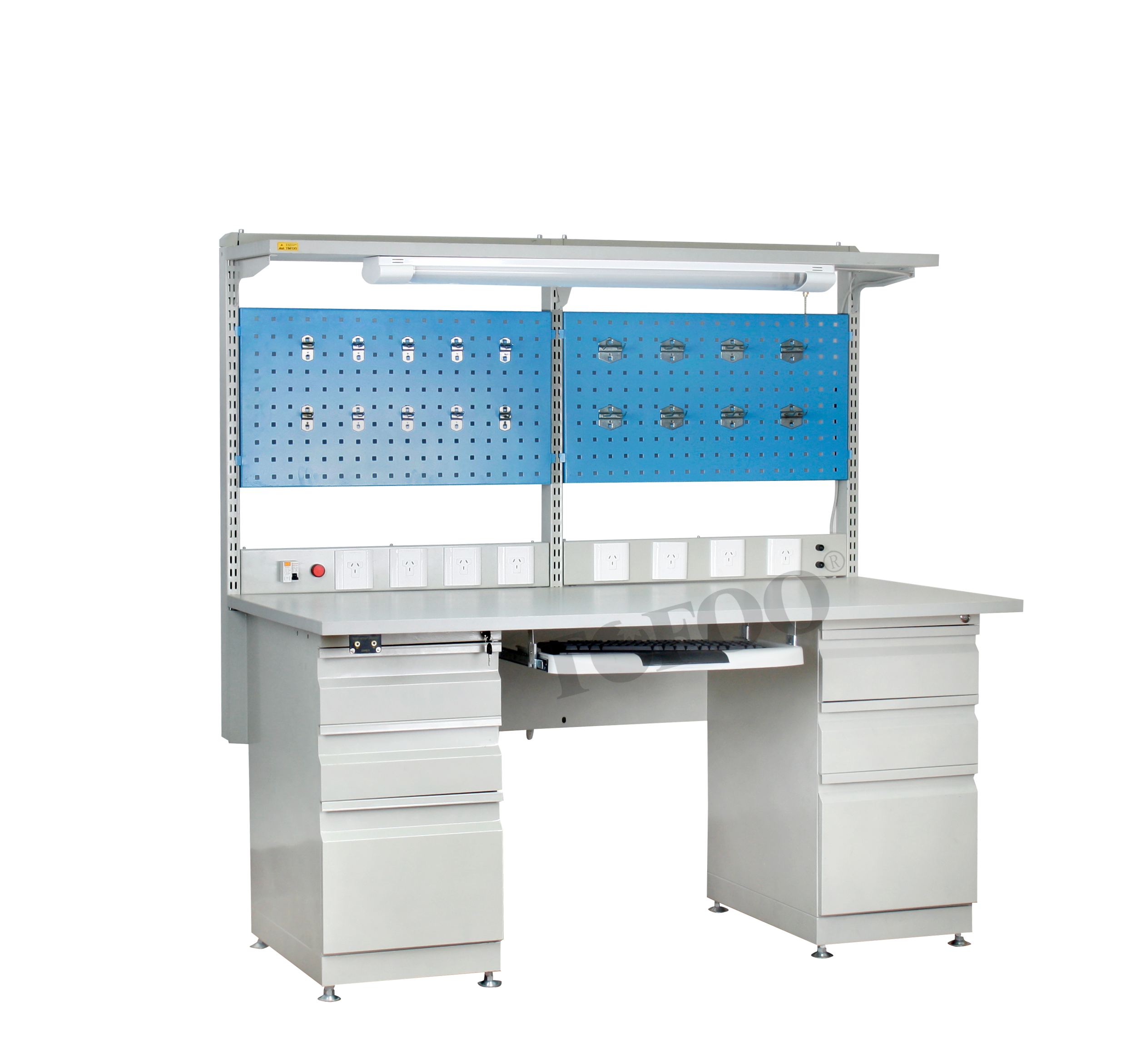整体防静电 ------拓伏提供的防静电工作台不只是台面防静电,钢制品部件均采用专业的防静电喷塑工艺,达到整体防静电的效果。