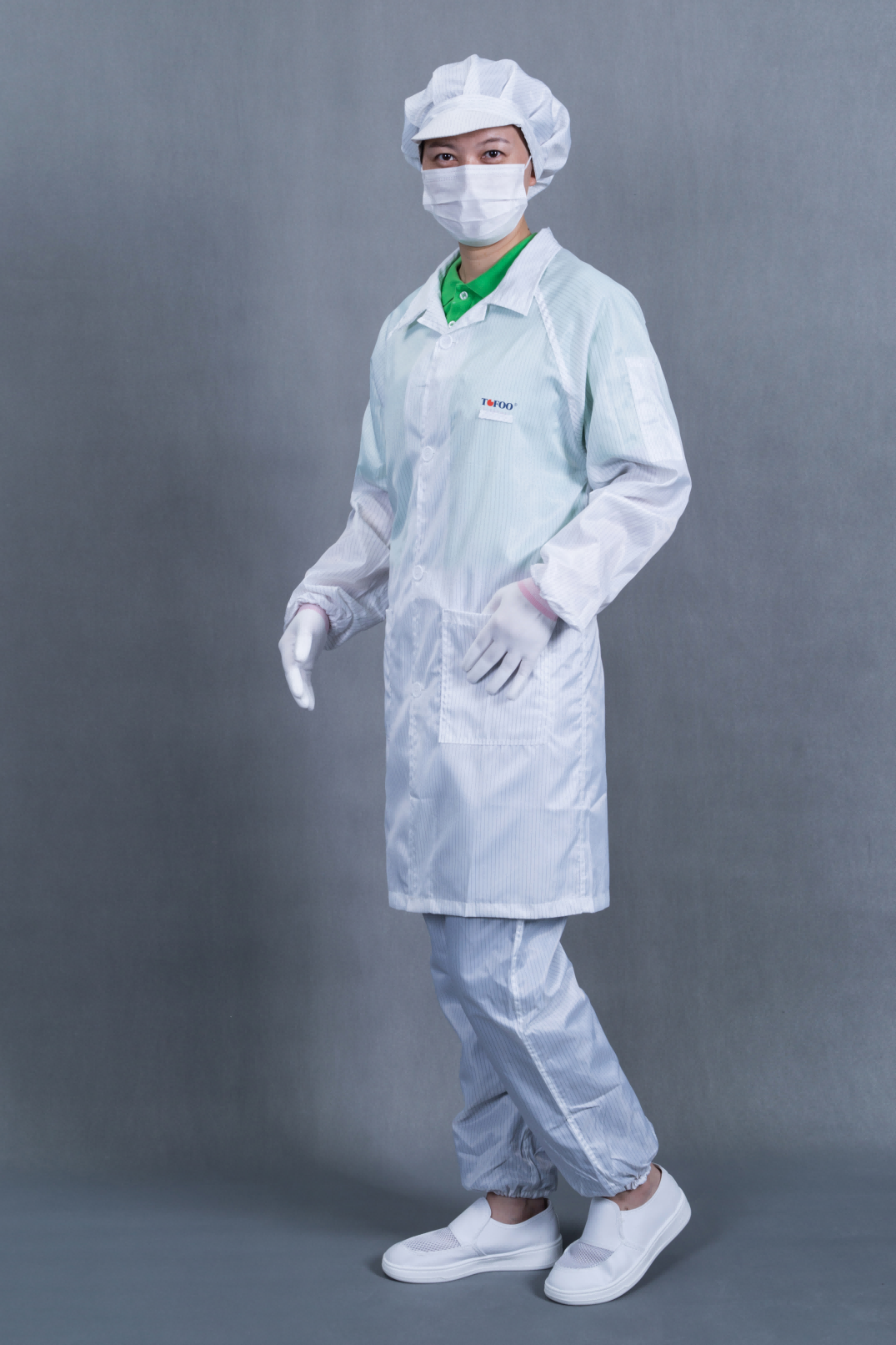 常规0.5条纹面料,具有防静电防尘功能,穿着舒适透气;