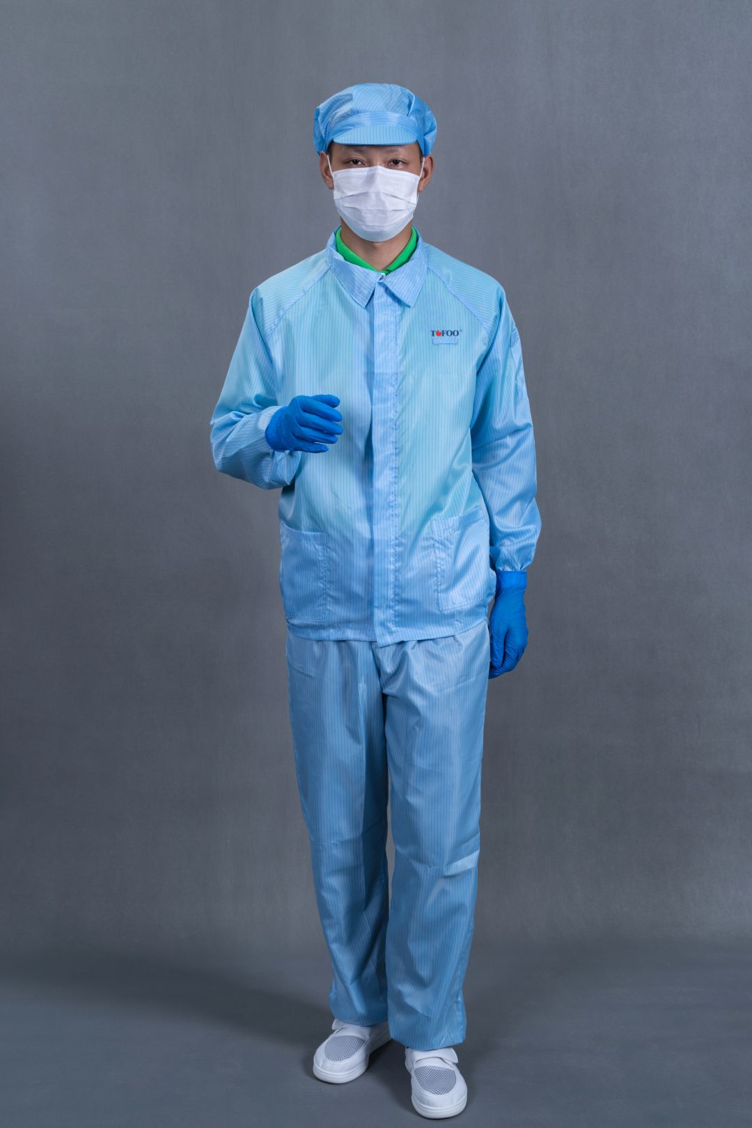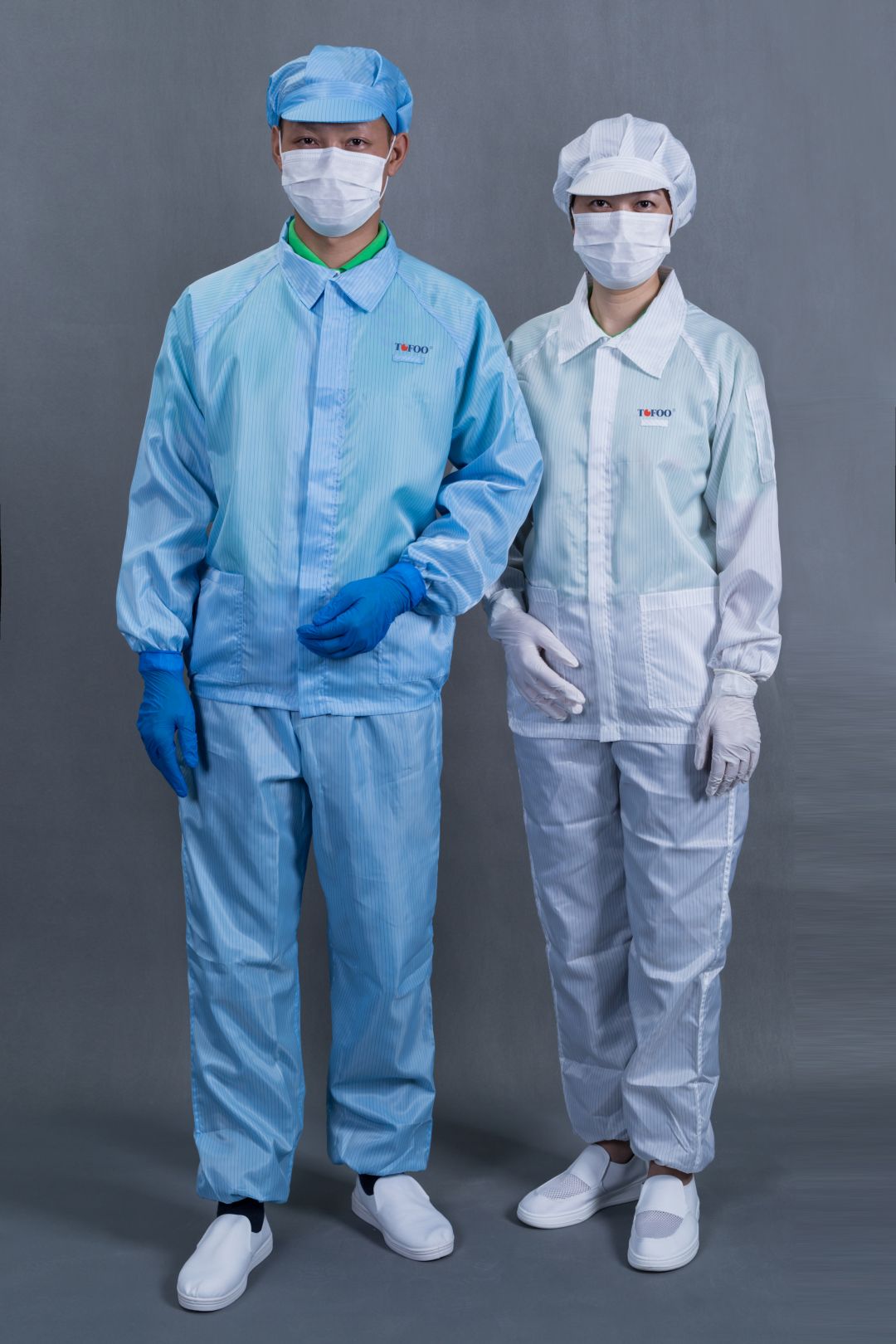 由防静电上衣和防静电裤子组成,前襟拉链加门襟设计,有效防止微小的尘埃与颗粒;